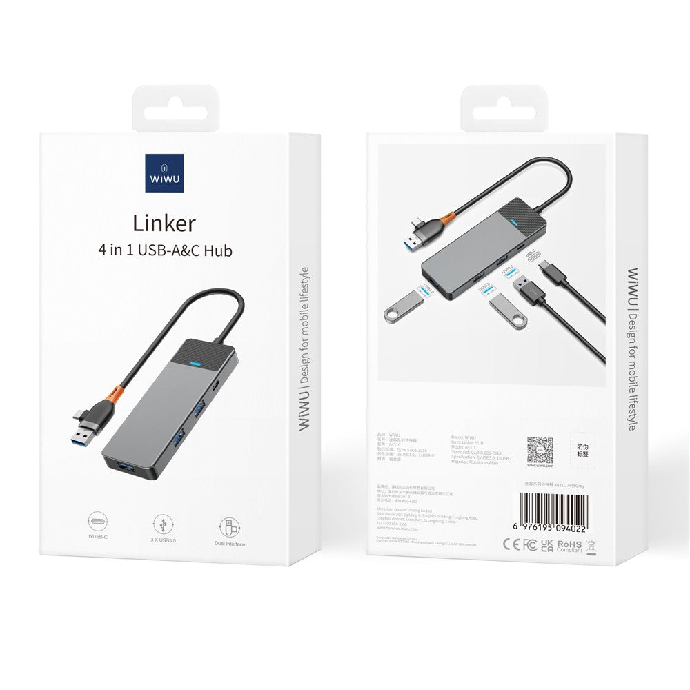 WIWU A431C Linker Series USB-A&C Hub Adapter 4-in-1 Portable Docking Station with 3 USB3.0+USB-C 3.0