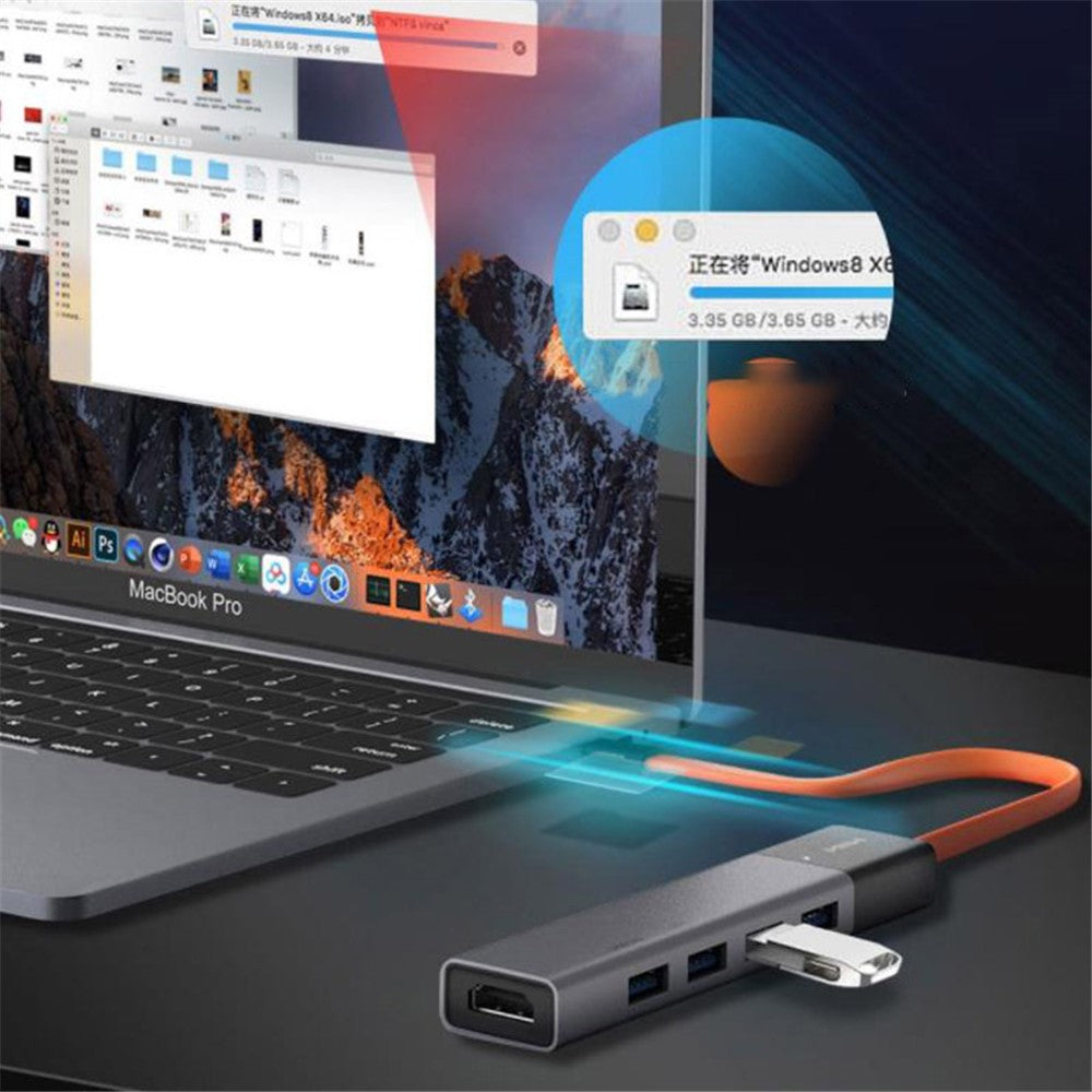 - This is a USB-C hub to 4*USB 3.0+1*HD video output adapter
