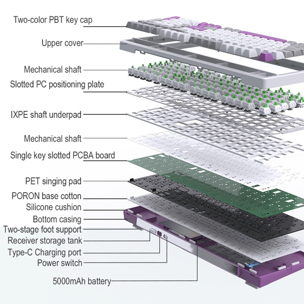 Y-FRUITFUL K102 102 Keys Tri-Mode Keyboard Gasket Structure Mechanical Gaming Keyboard with RGB Light