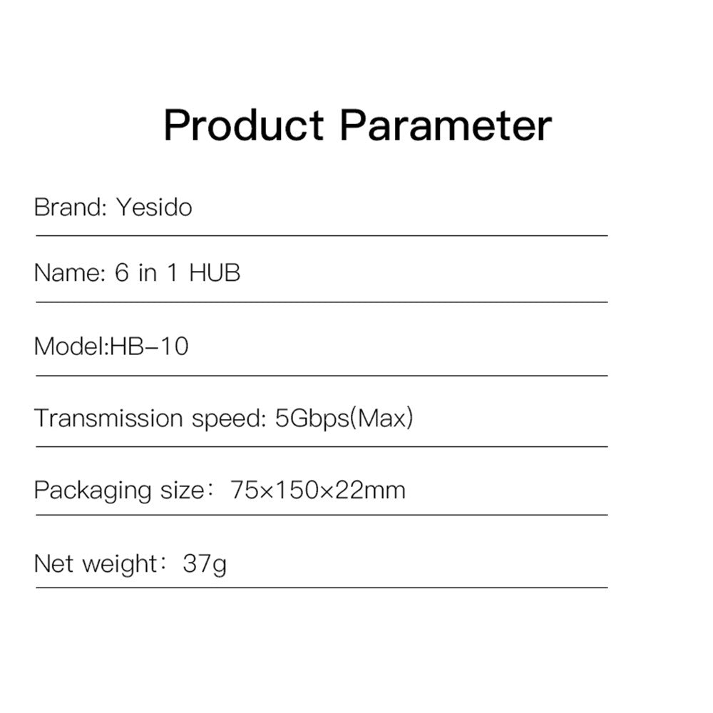 YESIDO HB10 Dual Type-C Hub Splitter 6-in-1 USB3.0 TF/Memord Card Reader PD Adapter Notebook Docking Station