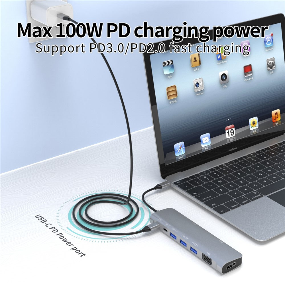 YSTC9048 9 in 1 Multi-port USB C Hub Portable High-speed Data Sync Converter USB C to USB3.0 TF SD Adapter Support HDMI VGA