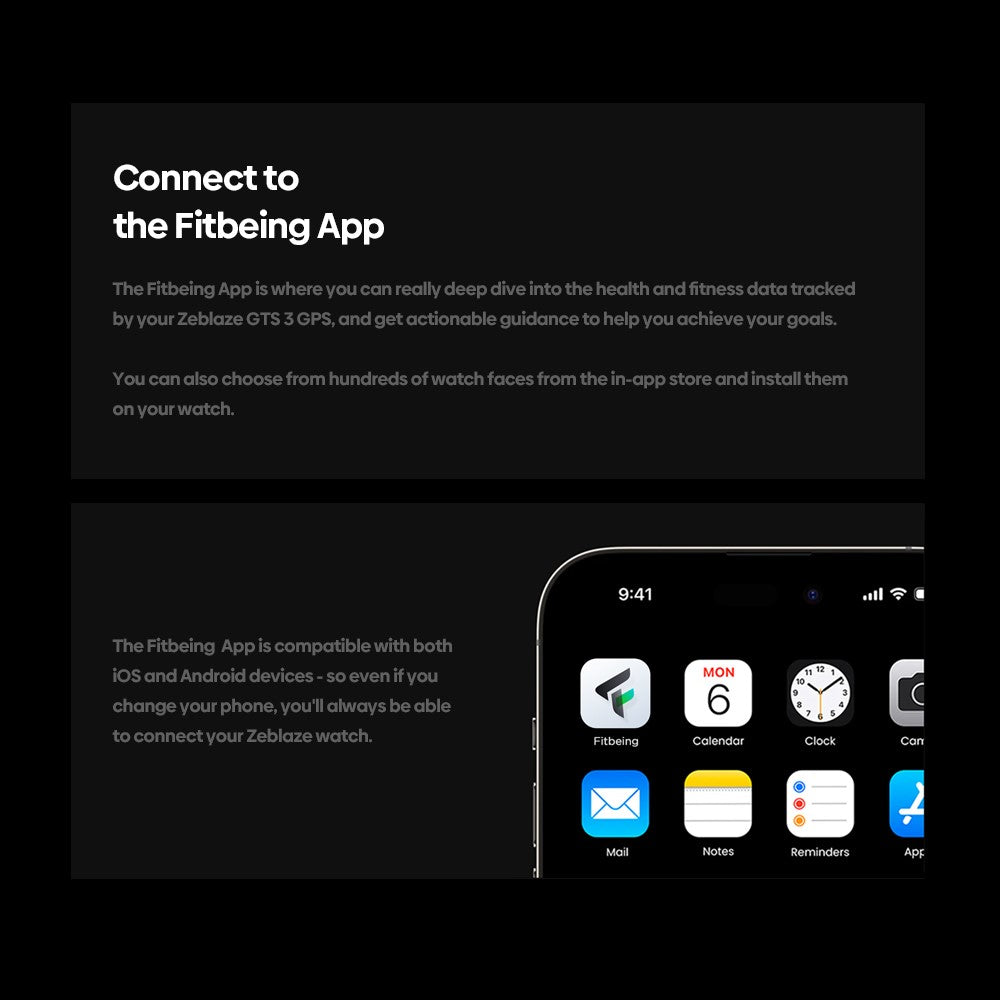 - Smartphone Assistance: Controls Smartphone Music and Camera, Phone Call Notifications, SMS Notifications, App Notifications, Find My Phone.
