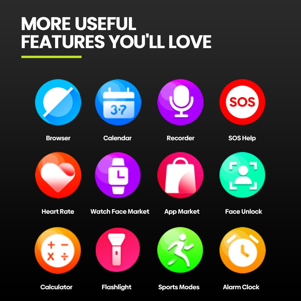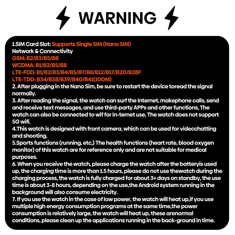 Functions | 4G Network(Global Bands), GPS/GLONASS/Beidou, Google Play, Google map,Offline Music, WiFi, Weather, Clock Faces for Any Occasion (Custom Watch Faces), Apps, Clock faces & Notifications, Phonebook, Alarm, Bluetooth, Browser, Calendar, Camera, E-book, MP3, MP4, Additional, Heart rate monitor,blood oxygen monitor,Pedometer, Call Reminder, Remote Music,Message Notification, Answer Call, Dial Call. | ||