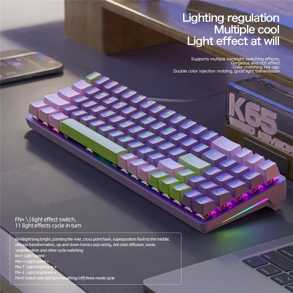 ZIYOULANG K65 78 Keys Hot Swappable Mechanical Keyboard RGB Light USB Wired Keyboard