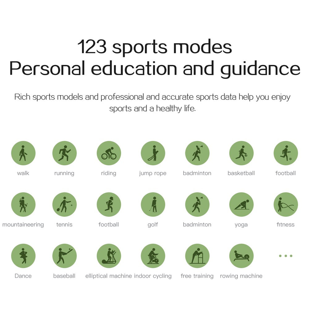 Multi-Sport model-Watch | 123 multi-sport modes: walking, running, cycling, skipping, basketball, football, badminton, swimming, etc... |